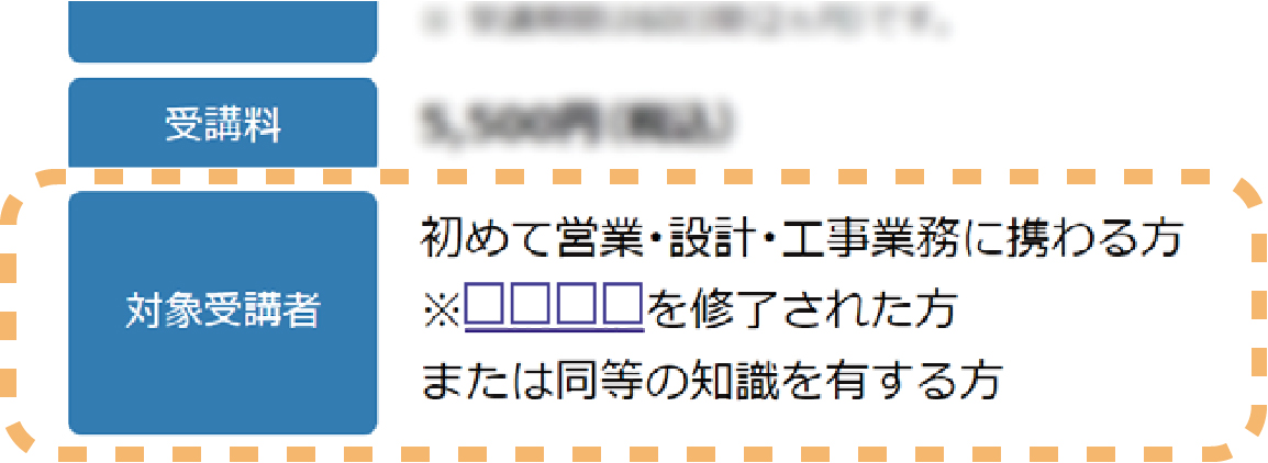 • ●対象受講者の条件によっては、当講習を受講できない場合があります。